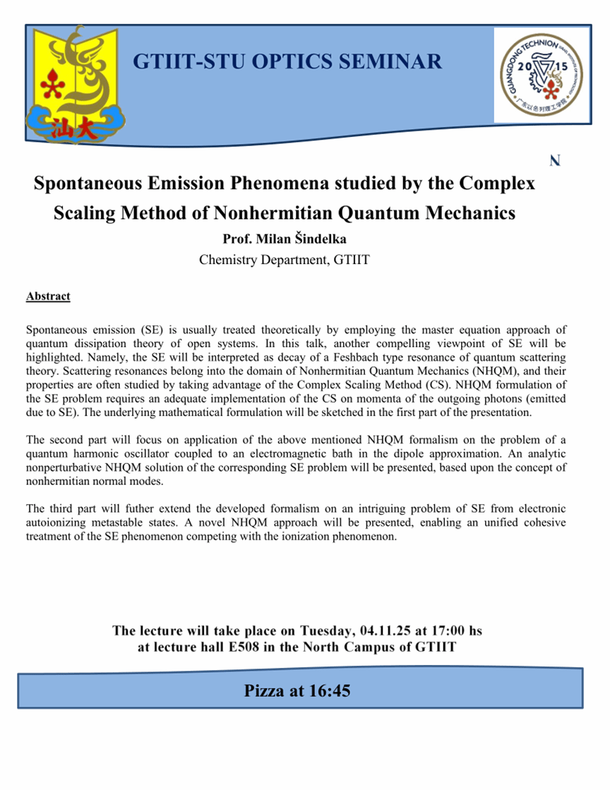 报 告 人:Prof. Milan Šindelka(Chemistry Department, GTIIT)