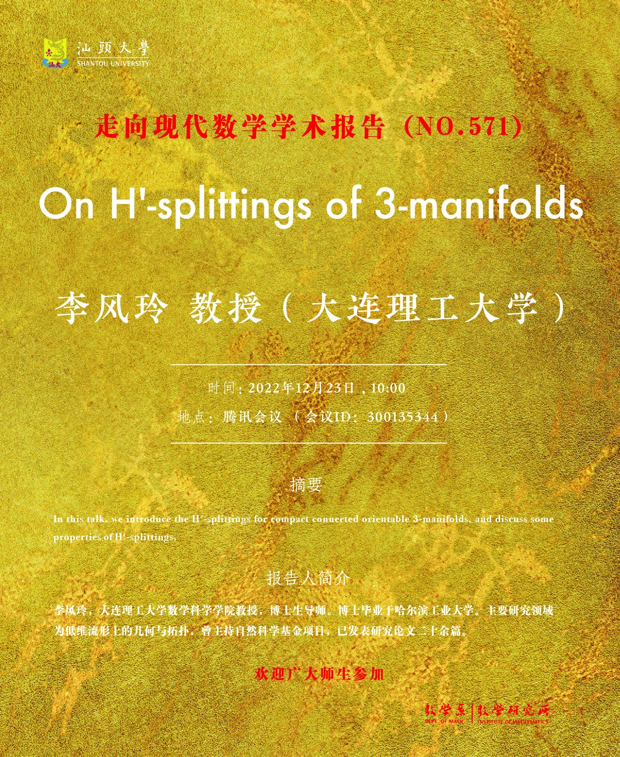 走向现代数学学术报告 - 李风玲教授(No. 571)