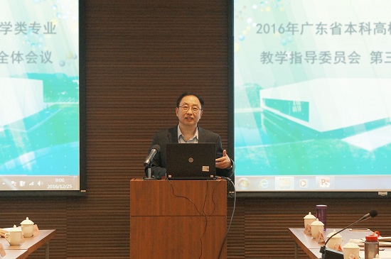 2016年12月25日上午,广东省本科高校化类专业教学指导委员会(以下简称“教指委”)第三次全体会议在汕头大学学术交流中心顺利召开。本次会议由化学类专业教学指导委员会主办,汕头大学理学院承办。省内28所高校或事业单位的35位化学学科领导和专家出席了此次会议,其中包含了22位教指委委员,汕头大学执行校长顾佩华教授,理学院副院长黄晓春教授、杜虹教授,化学系系主任鲁福身教授等出席了会议。