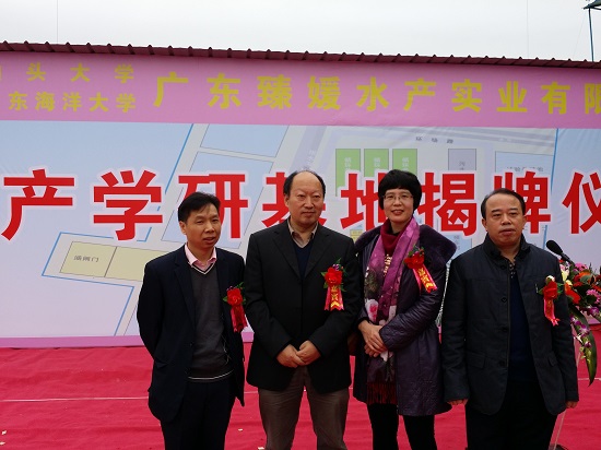 近日,我校科研处陈严处长、理学院党总支书记林锦香、海洋生物研究所所长李远友教授、生物系主任章跃陵教授等一行,赴揭阳参加“汕头大学、广东海洋大学、广东臻媛水产实业有限公司产学研基地”揭牌仪式。