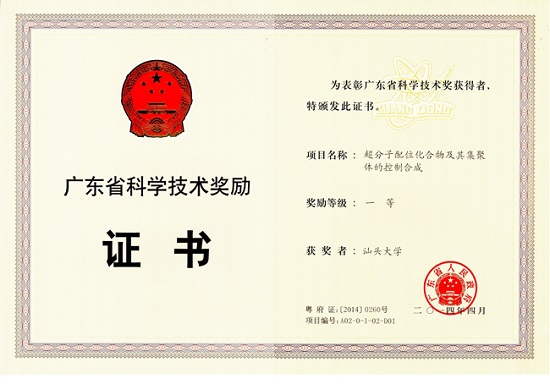 我校理学院化学系李丹教授研究团队主持完成的科研成果“超分子配位化合物及其集聚体的控制合成”荣获广东省科学技术奖一等奖,该成果实现了我校省部级科学技术奖的新突破,是我校首次以唯一单位获得的广东省科学技术一等奖,也是我校化学学科2012年进入ESI全球前1%行列后的又一标志性成果。李丹教授代表研究团队参加了本次会议并领奖。