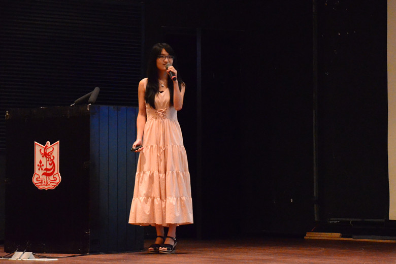 大会的最后,10生物技术本科生陈漪以及13级物理系研究生、09应用物理本科毕业生简玮作为新老生代表与新生们分享了自己精彩而充实的大学经历。拥有丰富活动经历的陈漪告诉新生们,在大学里,无论是培养能力还是专心学习,学生都应该对自己的成绩有一定的要求,不要以培养能力为借口放弃自己的学习。