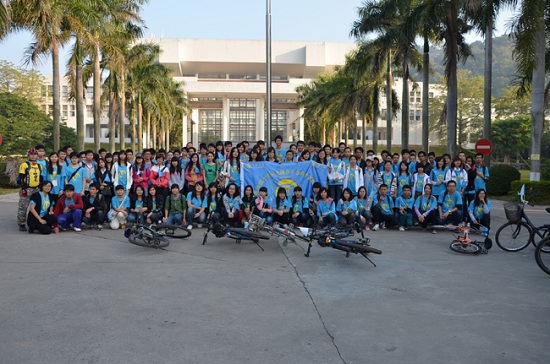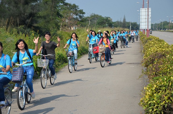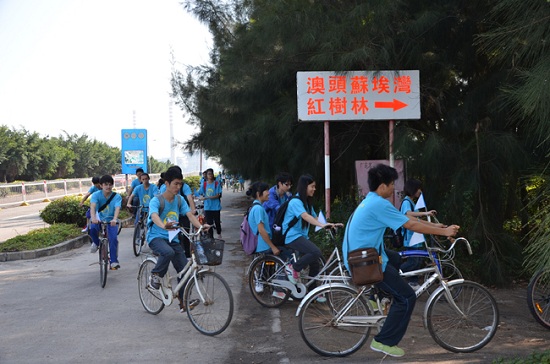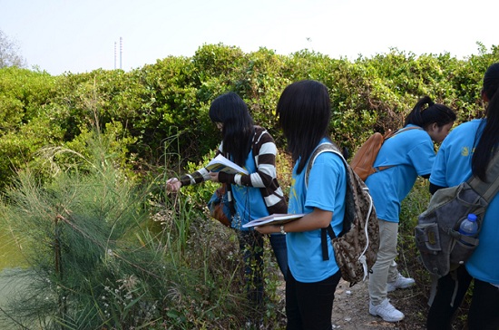 11月3日,时值金秋,为走向海洋,探寻即将消失的“海岸卫士”,汕头大学理学院发起并组织了主题为“汕头苏埃湾红树林生态系统现状调研”的自行车公益考察活动。选修公益课程《走向海洋》及《海洋生物探秘》、《海洋生物资源概论》课程的100多名同学在孙泽伟等老师的带领下,参加了历时一天的骑行考察公益活动。