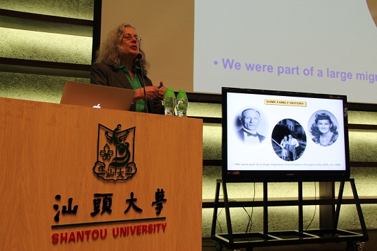 讲座中,Klinman教授首先表达了对李嘉诚先生的敬佩之情,并感谢李先生提供给许多加州大学的女教授这样来汕大交流的机会。随后,Klinman教授讲述了她成为科学家的心路历程。在Klinman教授的成长过程中,家庭的影响很大,她的母亲一直教导她科学与创意的重要性,也正是源于对科学的兴趣,她选择到宾夕法尼亚大学求学。Klinman教授说:“令人高兴的是,随着女性在科学领域取得博士学位的比率越来越高,女性的地位也逐渐提升。”