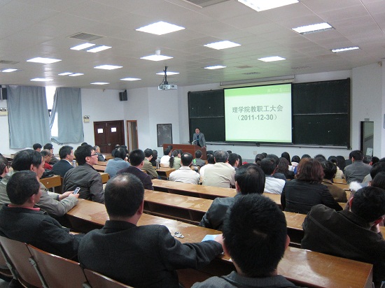 12月30日,理学院召开2011年全体教职工大会,学院领导对理学院2011年各项工作进行了总结,并对2012年学院的工作重点进行了部署,会议重点探讨了理学院本科教学改革工作。文学院国际研究中心郭伟文副教授应邀出席会议并就教学改革议题作了“如何在课程中植入整合思维培养环节”的报告。