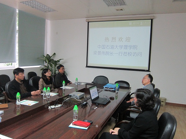 12月8日,中国石油大学(北京)理学院梁景伟院长一行4人来我校交流访问。梁院长一行到理学院、工学院进行了友好访问,并就理学院的公共基础课程设置情况和工学院的EIP-CDIO人才培养模式进行了交流、探讨。