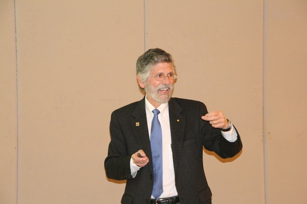 24日下午,Luis Echegoyen教授在生物医药与先进材料研究中心作了题为“Buckyball Maracas: Interplay Between the Inside and Outside Properties of Endohedral Fullerenes”的报告,报告由李丹副校长主持。Luis Echegoyen教授是国际上研究富勒烯的著名学者,杰出的研究工作曾获得多个荣誉奖项,目前是德州大学Robert A. Welch讲席教授。他用生动的语言展现了富勒烯的化学世界,同时也介绍了这类材料作为太阳能电池的潜在应用。