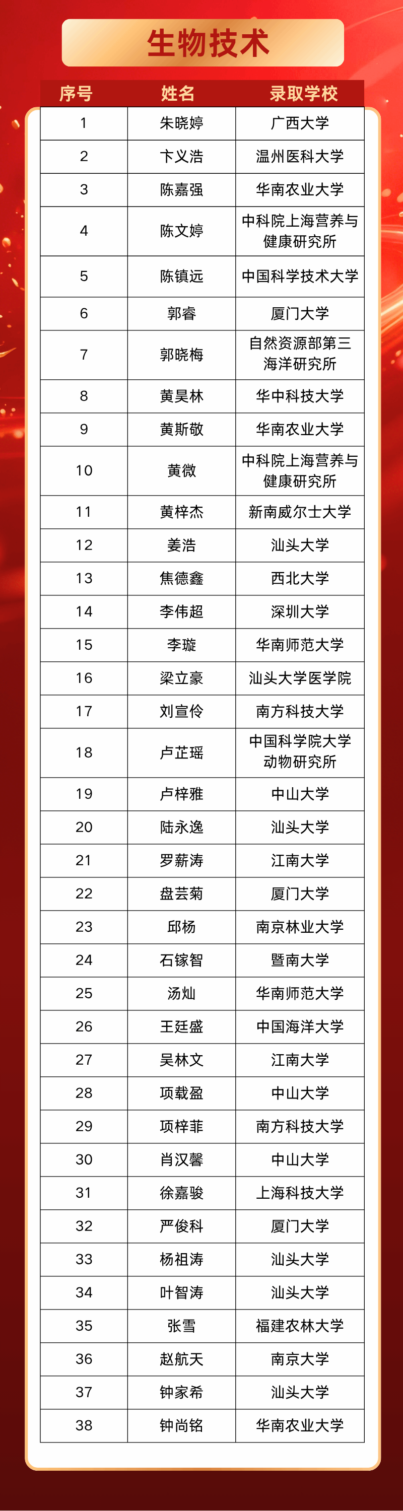 海洋科学55位毕业生中,共有16人升学深造,其中3人被保研到华东师范大学、南方科技大学双一流高校;13人考取中山大学、香港中文大学、中国科学院大学、上海海洋大学等国内外知名高校研究生,升学率达29.09%。