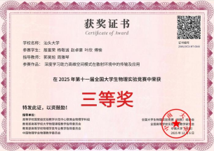 2025年11月2日至7日,由广东省物理学会主办、佛山大学承办的第二十六届华南大学生物理实验设计大赛在佛山大学仙溪校区举办。大赛覆盖广东、广西、海南三省区34所高校,共212支队伍参赛。我院学子在五项命题中表现卓越,具体获奖情况如下: