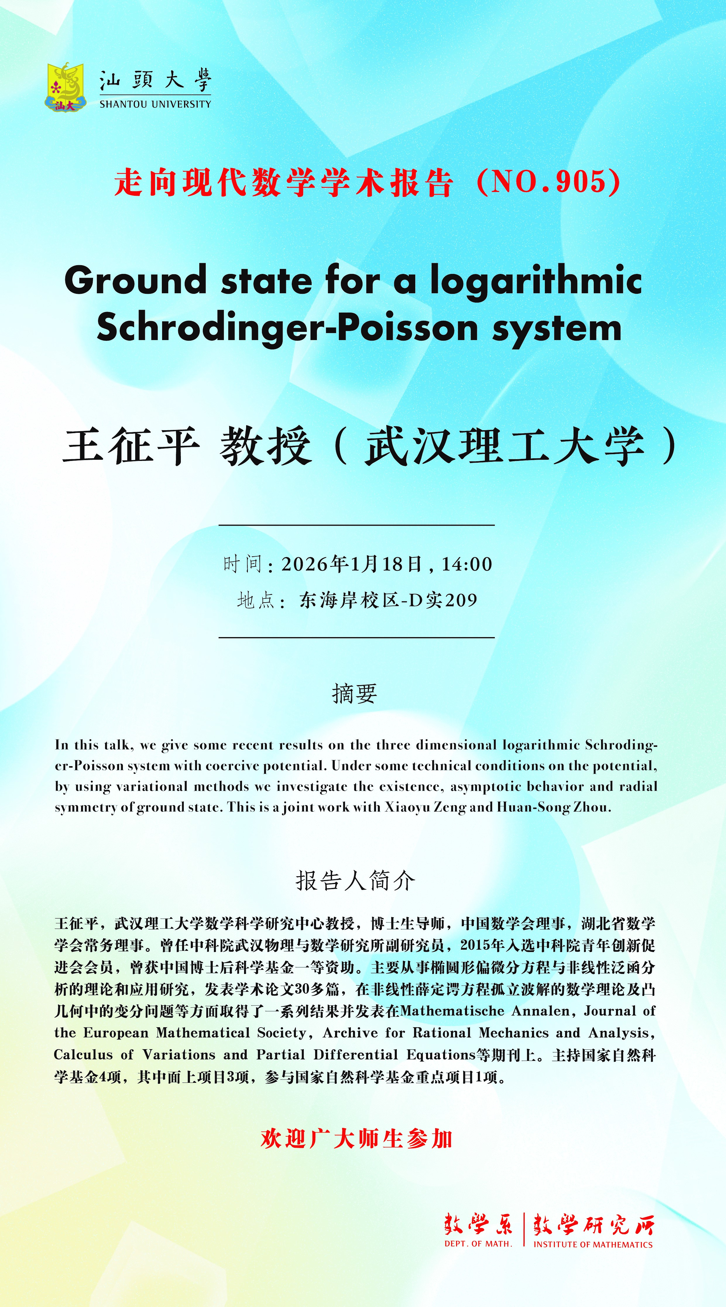 走向现代数学学术报告 - 王征平教授(No. 905)